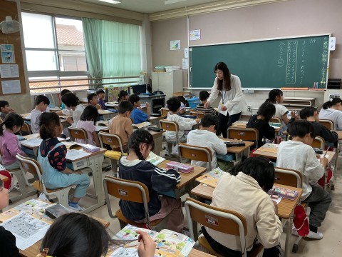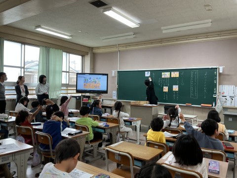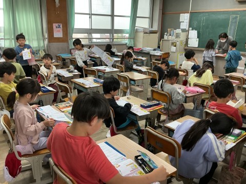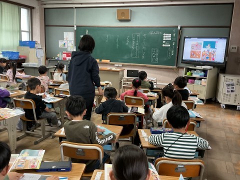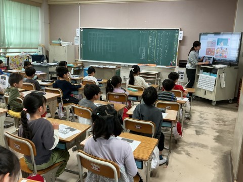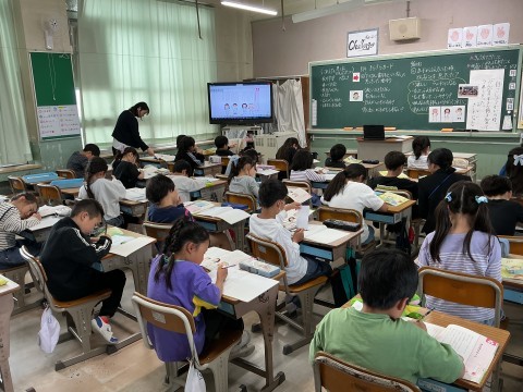 国語は「白いぼうし」の学習です。登場人物や本文から読み取ったことを交流しています。