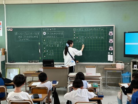 2年生は算数の学習をしているクラスがありました。筆算では、位を揃えることが大切になってきます。