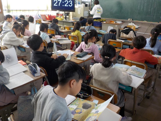 国語は「スーホの白い馬」です。場面ごとに読み取りながら物語文に親しんでます。自分の感想を伝えあったり、別のお話を読んで好きな作品を見つけたりしていました。