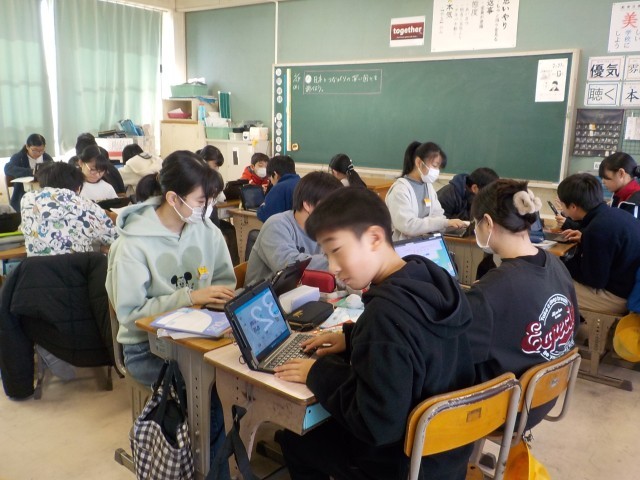 社会では日本とつながりの深い国について調べています。グループに分かれてインターネットを使って調べていました。