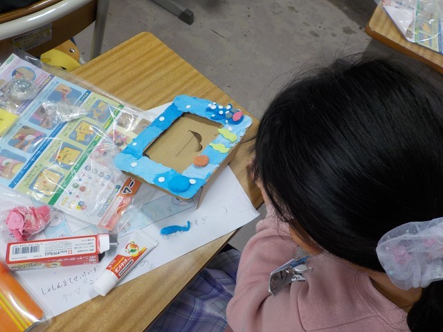 図工はフォトフレーム作りです。みんな楽しそうに取り組んでいます。一人ひとりのこだわりが詰まった作品が出来上がりそうです。