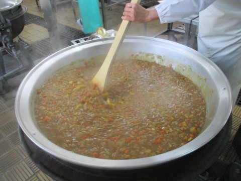 今日の給食は、ごはん・牛乳・チキンカレーライス・キャベツのごま酢かけです。