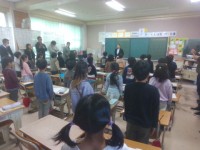 他のクラスでは、学校での過ごし方について話していました。本日は「あるこうデー」ということで廊下などでの過ごし方をかくにんしていました。