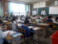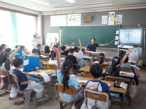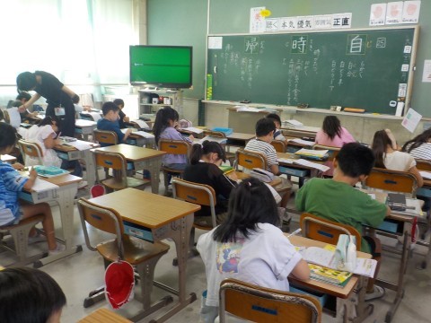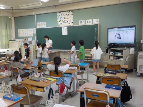 新出漢字の学習をしていました。漢字を使う言葉を出し合ったり,書き順,バランスを意識して練習したりしていました。みんな真剣に取り組んでいました。