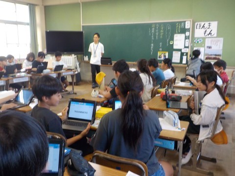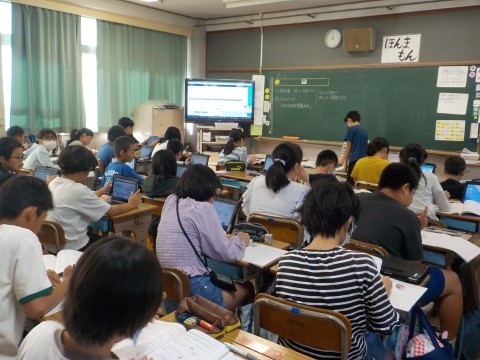 国語は「たずねびと」という教材の学習です。本文を読んで感想を書き,ICTを活用して,お互いの感想を交流していました。動いて見せ合うという交流もできますが,ICTを活用することで,より交流の幅が広がることもあるので様々な使い方ができそうですね。
