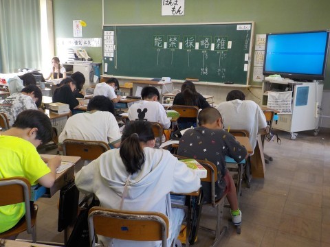 別のクラスでは新出漢字の学習です。担当の子が書き順などを前で説明しながら自分たちで学習をしていました。