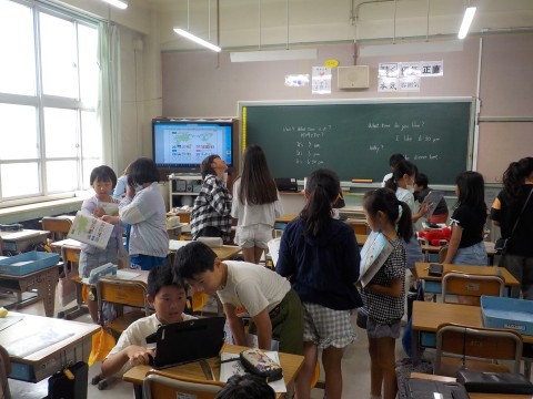外国語は一日の時間で何時が好きかを交流しました。朝食が食べれるから○時が好き。サッカーがゲームがなど色々な意見があって面白かったです。