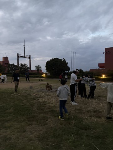 夕食をおいしくいただいた後は楽しみにしていたキャンプファイヤー。