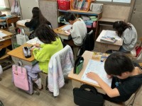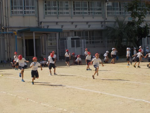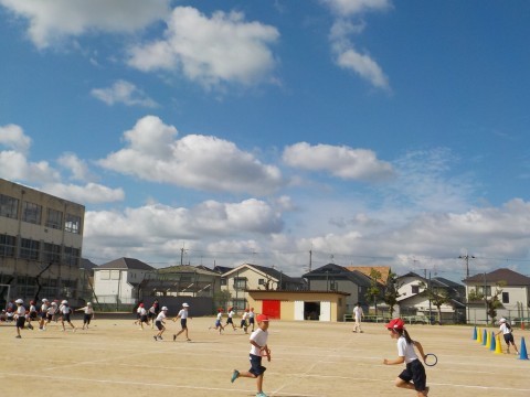 体育はリレーをしていました。早くバトンパスをするために走ったり,チームの応援をしたり子どもたちの頑張りと楽しんでいる声が沢山聴こえてきました。
