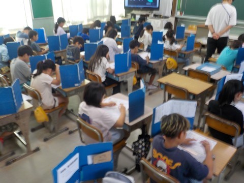 音楽は歌のテスト中。学習したことを活かしながら,歌を歌っていました。