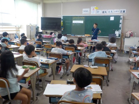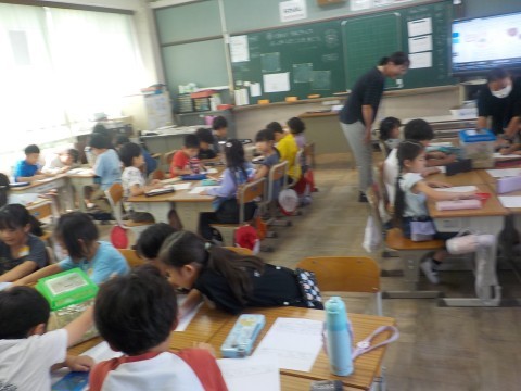 生活の時間は捕まえた虫の観察をしていました。バッタの特徴などを観察していました。観察できたら,食べ物になる草などを取りに行きました。