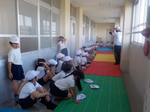 体育は体育館が工事で使用できないため,廊下でマット運動をしていました。前転,後転などに取り組んでいました。