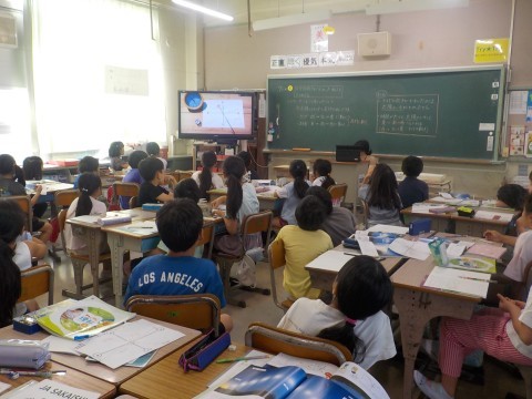 理科は太陽の動きを学習しています。一日の太陽の動きを観察して,どのような動きをしているのか見つけていました。