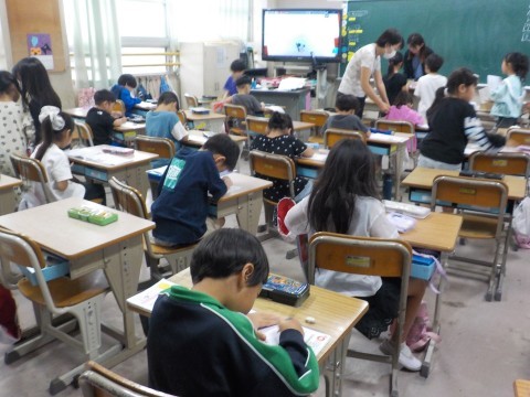国語は漢字の学習をしていました。新しく学ぶ漢字を丁寧に書いていました。