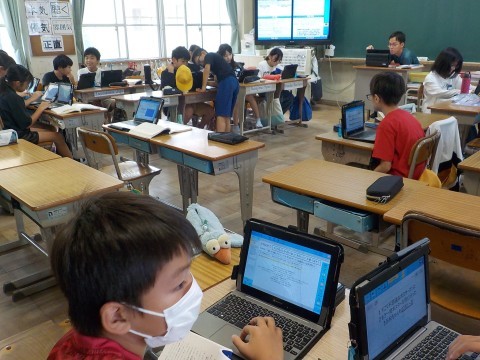 国語は「たずねびと」を読んで,先週までに読み取って,考えたことをそれぞれに分かれて読み深めていました。考えていることをタブレットでまとめながら,共有していました。