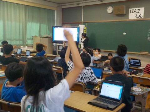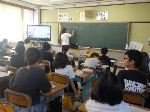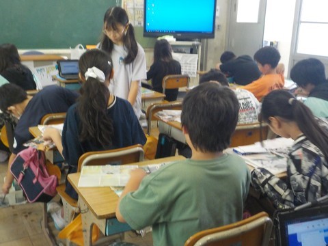 社会はグループでまとめていたことを全員の前で発表しています。がんばりが沢山見れました。