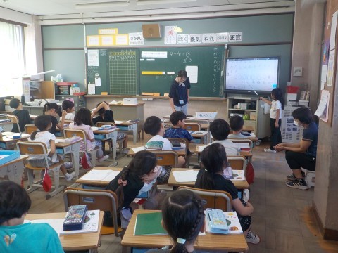 国語は「くじらぐも」の学習です。学習も進んで,学校を回っていると「天までとどけ,1,2,3」と聴こえてくるときもあります。
