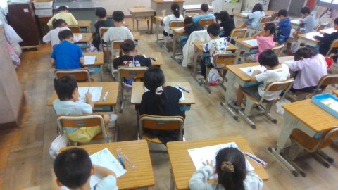 しずかにしゅうちゅうして,ていねいなじでれんしゅうするじかんです。