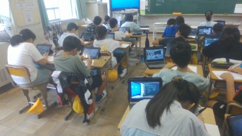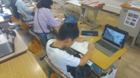 教室,図書室,ウサギ小屋,バスケットゴールなど様々な場所を選んでいました。