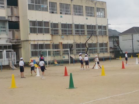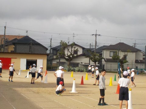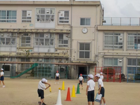体育は運動場でティーバッティングをしていました。ボールを打ったり,守ったり楽しそうな声が聴こえてきました。