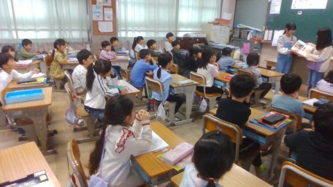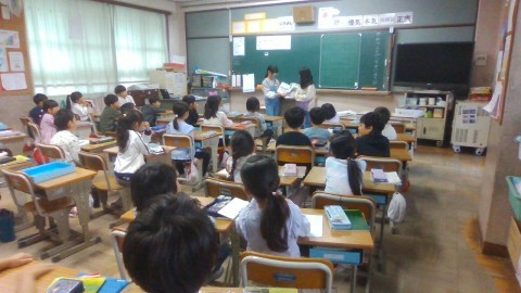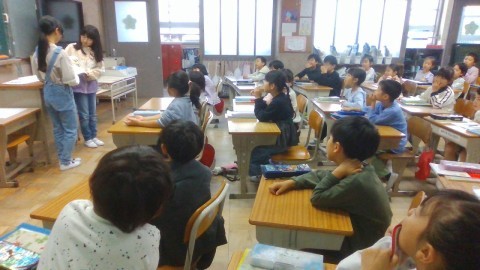 あさのじかんに6ねんせいが,ほんのしょうかいをしにきてくれました。