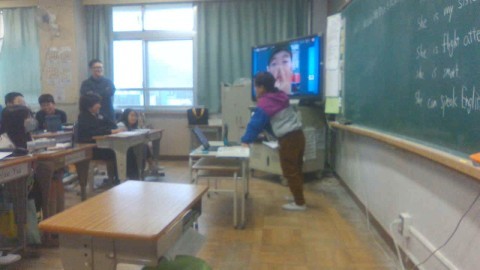 「He is my brother.」「She is my friend.」など,その人が何が好きで,何が得意かなども発表しました。