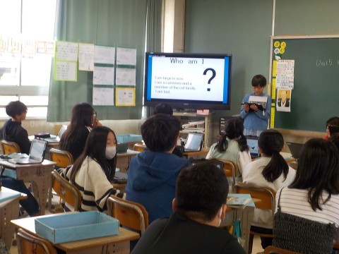 外国語は「Who am I?」という動物を演じて,自分が何の動物か英語でクイズをしました。