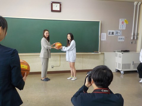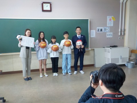 このボールを使って,バスケットボールが大好き,スポーツが大好き,生涯にわたりスポーツに親しむような子どもたちになればと願っています。