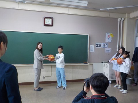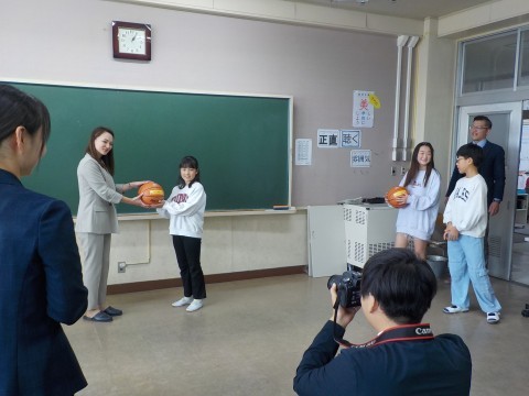 本日,株式会社サカイ引越センター様のご協力のもと,本校へ大阪エヴェッサ様よりバスケットボールを3球,寄贈していただきました。