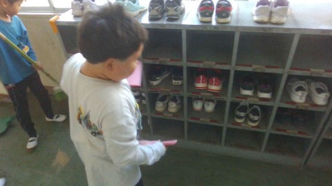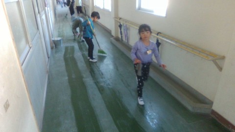 じぶんたちのきょうしつだけでなく,ろうか くつばこ うんどうじょう などいろいろなところのそうじもしています!