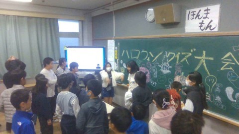 ハロウィンクイズ大会をしました。ハロウィンに関係のあるクイズやジェスチャーゲーム,怖い話などもありました。
