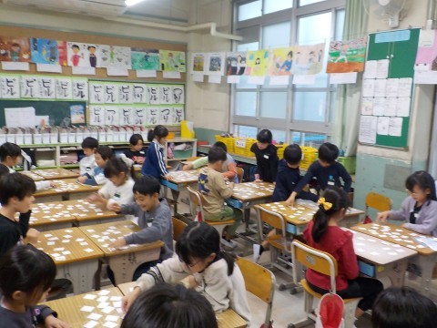 外国語は新しいUnit.5で出てくる単語のカードを使って,神経衰弱をしました。何度もめくり声に出していくことで,一回目分からなかったもが,次に言えていたり変化も見ることもできました。