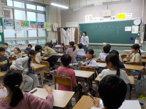 別のクラスは伝言ゲームをしていました。楽しい雰囲気が伝わってきました。