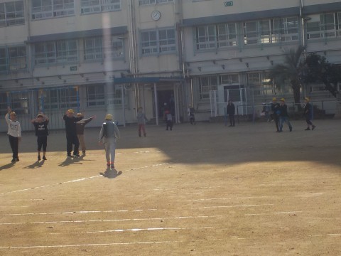 温かい服装をしている子が増えてきました。今日も天気が良く,外ではドッジボールやバスケットボールをしている子が沢山いました。