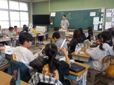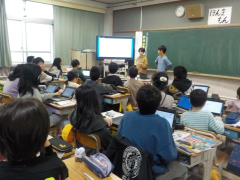社会は工業について学んでいます。自動車がどのような流れで購入した人のもとに届くのかなど生産の流れについてまとめていました。他のクラスではクイズ形式にして発表しているところもありました。