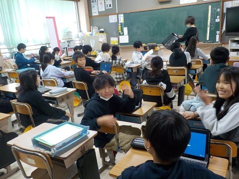 大阪880万人訓練がありました。6年生の教室や廊下に,全学年が避難しました。