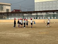 体育はタグラグビーをしていました。ボールをパスしながらボールを前に運んでいました。