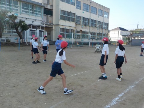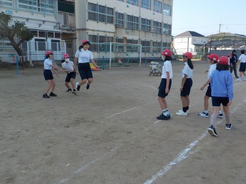 体育はサッカーボールでドリブル練習をしたあとは,長縄で八の字跳びの練習をしていました。テンポよく入って跳んで,とても上手でした。まだまだ記録が伸びそうです。