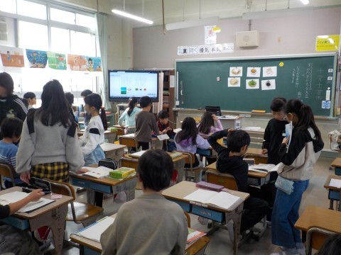国語は「すがたをかえる大豆」の学習がスタートしました。本文を読んで段落をつけていました。説明文教材では文章を書くコツがすごく分かりやすい教材の一つです。文章の書き方を真似したりして,自分の文章にも活かしてほしいですね。