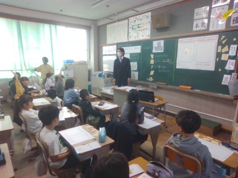 本日は2年生の研究授業でした。算数の図形の単元のはじめでした。1年生の図形の学習を思い出しながら,手元にある形を並べ変えながら,形作りをしました。形を組み合わせたあと,それぞれの形の特徴を見ながら仲間分けをしました。「直線」「かど」など言葉に注目しながら仲間分けをして,お互いに説明し合っていました。