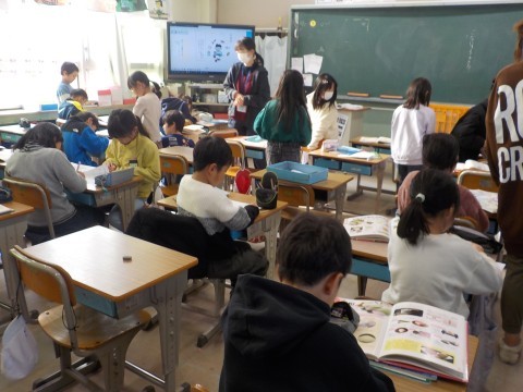 国語は「すがたをかえる大豆」という学習でした。文章を読みながら学びを進めています。姿を変える○○ということで本で調べたことを文章に書き表しています。