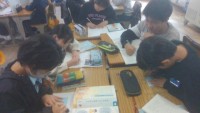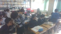 下絵に沿って,切っています。「疲れた~。」「これ,切るのむずかしい。」と言いながら切り進めています。