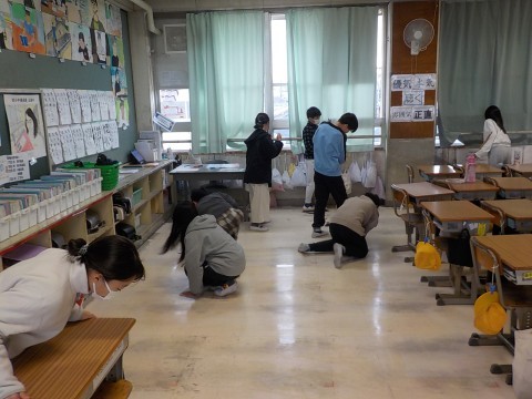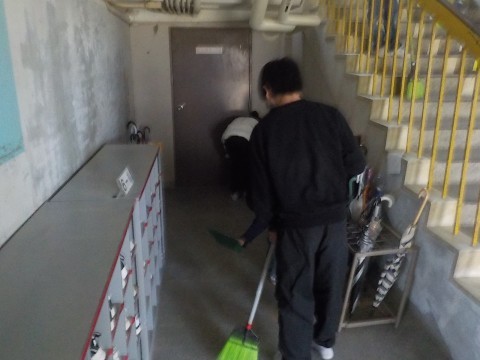 黙々清掃頑張っています。誰かが見ているとか見ていないとかそういうのではなく,自分自身を見つめながら黙って掃除をできる人であってください。