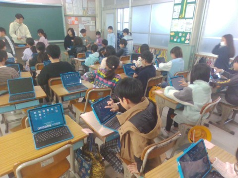 本日より新端末の導入が始まりました。まずは4年生から6年生が今日と明日で初期設定や登録などをしていきます。新しい端末を手に取る子どもたちのワクワクする気持ちが伝わってきます。3学期から本格的に学習での活用がはじまっていきます。