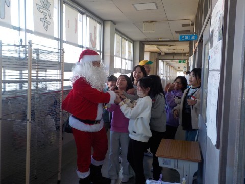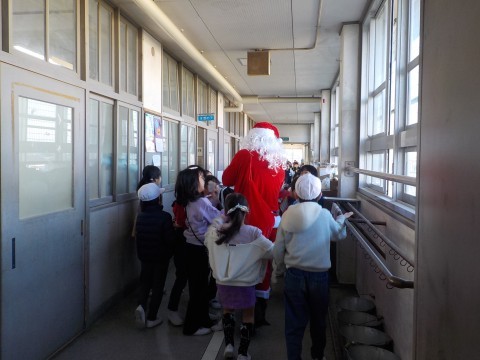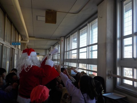 本日は学校にサンタが来ていました。みんな嬉しそうです。