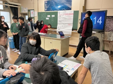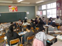 社会は単元のまとめに向けて、復習プリントの問題を解いていました。教科書や資料集、今までのノートを見ながら取り組んでいます。
