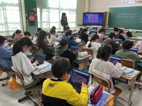 外国語の学習では準備運動でKahoot!というアプリを使って果物や野菜の英語について復習しました。