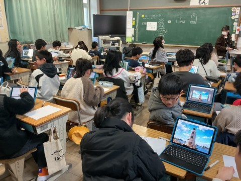 総合の学習では、一年間のまなびの成果を伝えるためにパワーポイントや画用紙など様々な方法で自分たちの発表の準備をしていました。子どもたちなりのまとめかた、伝え方などがみられました。完成が楽しみですね。