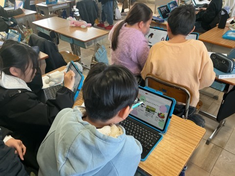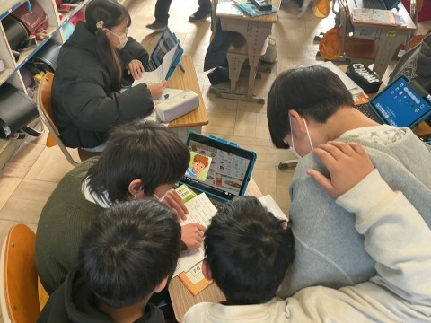 外国語はお店で注文する時の値段のたずねかたをアテレコで繰り返し練習していました。何度も練習しているとスラスラ言えるようになったり、その役になりきって声色を変えるなど工夫している子たちもいました。