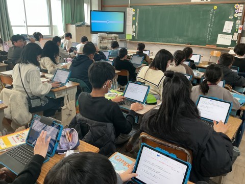 綜合の学習では学んできたことを発表するために、パワーポイントや発表ノート、画用紙など自分たちで方法を選択しながらまとめています。それぞれの班によって表現の仕方もたくさんあり、iMovieで動画を作成して表現しているグループもありました。